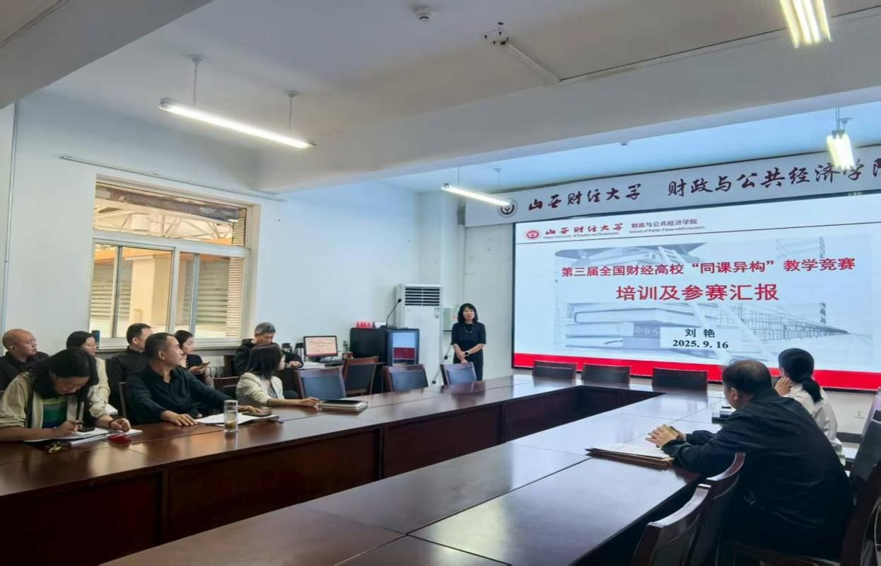 刘艳老师于财神捕鱼会议室,为全院教师进行了题为“第三届全国财经高校‘同课异构’教学竞赛培训及参赛汇报”的讲座。